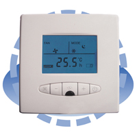 ICL 301 series room thermostat is applicable for controlling of fan coil, electrically operated valve, electrically operated fan valve, electrically operated tuyere and heat supplying facilities. This product use LCD display, detect the room temperature and compare with the temperature setting by user, automatically adjust cooling/heat air flow or close down the pipeline electrically operated valve in real time via NTC temperature transducer in the temperature controller.