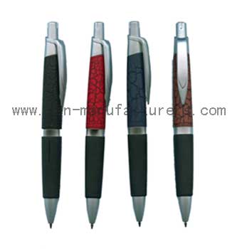 Description: Leather treated barrel ,Black rubber grip,Silver lacquer push button and clip,Metallic ring, Plastics Parker type blue and black refil, tip size: 0.7 & 1.0mm,length:146mm, Dia: mm