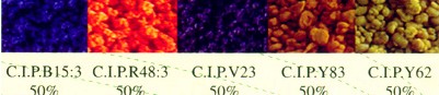 Use Switzerland CIBA-GEIGY wet method grind technology to pre-disperse pigments Treatment and particle diameter of pigment reaches 1痠 and Pigments gain better performance, higher pigmentation, more brilliant hue, better dispersibility.