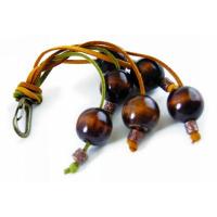 Key chain made with leather, and wooden balls.