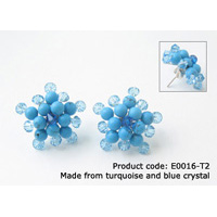 Flower earrings made from turquoise and crystal. It's elegant and bright. From another view, it looks like a cheerful colored snowflake.
