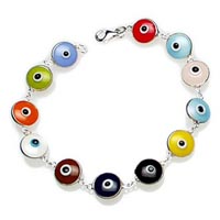 Evil eye bracelet, sterling silver, mixed color glass beads