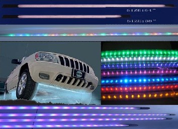 single color and seve-color^$Single color tube has eight colors could be chosen (white, green. orange. red. purple, pink, blue, light blue). ^#functions^$These Kits Look Awesome. There are different lighting patterns: strobe, chase, random, constant on, & flashing against the music.^#Main Products