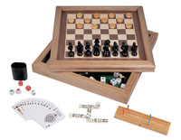 This wooden chess game set combines with six games, including chess, checker, dice, cribbage, playing cards, domino. We can also supply many other games, such as ludo, Pachisi, Chinese checkers, glass games, PVC games, backgammon, tic-tac-toe and etc. You are welcome to contact us now.