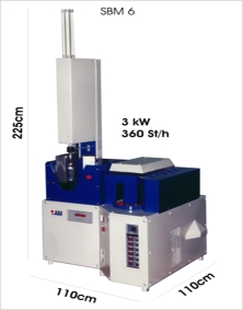 The blow molding machine SB - 6 is a modification of the already familiar SB 3. It is designed for blowing of polyethylene terephthalate bottles, providing for a great variety of shapes and a volume of up to 10 litres.