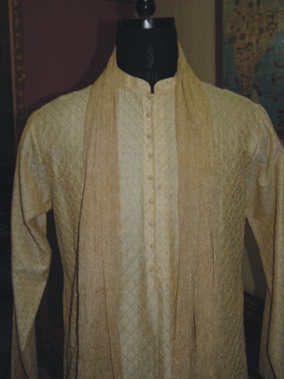 A blended silk Kurta set with all over embroidery pattern and a matching stole for a very special occassion