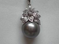 21 diamonds 0.25ct + 1 Tahitian black pearl dia.14x14.7mm with 18K white gold holder