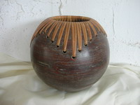 Ball Medium Vase "Maroon Antique with Rattan Design" DIA21 x H 28 cms