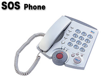 SOS Phone is a specially designed telephone for the elderly or patients equipped with security and normal telephone features. You can make an emergency or help request call to the person in charge by pressing a button. In case of an intrusion or a fire, it also automatically calls pre-stored phone numbers with a voice message.