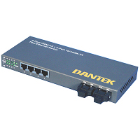 Dantek BFT Series is a 2-Port 100Base-FX + 4-Port 10/100Base-TX for FX/TX Bridge Media Converter and FX/TX Ethernet Switch Which complies with IEEE802.3 and IEEE 802.3u Standards. BFT Series enables network managers to connect 10 Mbps and 100 Mbps twisted pair network segments and active equipment to fiber optic cabling more cost-effectively than ever. MDI/MDI-X Auto Negotiation. WDM Technology of Fiber optic Combines Dual Fiber Cables into Single Fiber. Greatly save the Installation cost of Expensive Fiber Cable. Both a media and data rate converter, BFT Series features 10/100 auto-negotiation on the twisted pair port while the fiber port operates at 100 Mbps. BFT Series converters are ideal for any premises FTTD, LAN-to-LAN or LAN-to-WAN fiber networking applications.