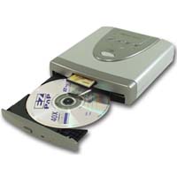 - Can be used as an external CD-RW drive and card reader simultaneously.