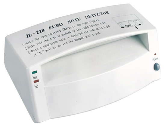 - JL-218 EURO Detector anthenticate the securify features on the whole EURO surface by using a unique data collecting,processing,contrasting and analyzing technology.The unit fulfils the authenticating process automatically.It is applicable for EURO5.10.20.50.100.200.500.