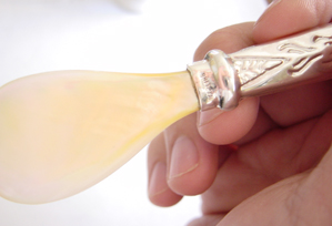 mother of pearl spoons, forks, knives, plates, and custom jewelry