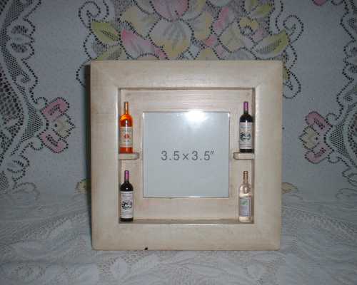 - Wooden Photo Frames with wine bottles. Size: 3.5x3.5"