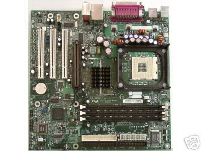 P4 INTEL MOBO SOCKET 478, 3 PCI SLOTS, AGP SLOT, AND 1 RISER SLOT, 4 USB PORTS, 1 PRINTER PORT, 1 SERIAL PORT, ONBOARD SOUND, SUPPORTS SDRAM, ATX FORMAT, 400FSB
