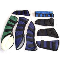 Horse riding equipment: Blanket, horse rugs, halter, head collars, leads rein with chain, lunge lead, padded girth, bandage, boots for legs, knee protector, snaffle bridle.