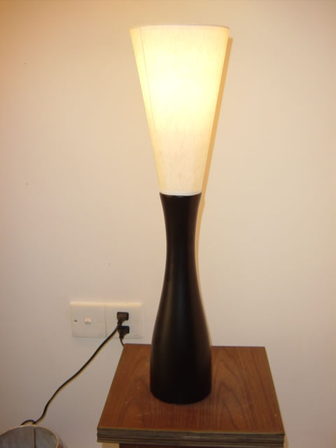 wooden base with the fabric shade