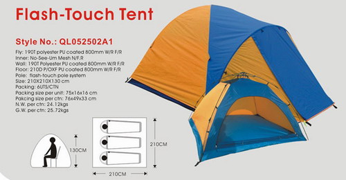Material: 190T polyester PU 800mm / 210D P/OXF PU 1000mm for floor/ flash-touch pole system size: 210x210x130cm