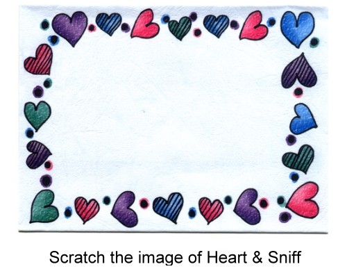 For example, print tulip on card, after scratching that image, there is a tulip perfume from the card.