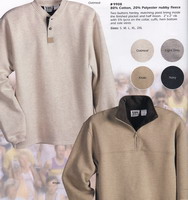 - Mock neck quarter zip with side pocket, 2" x2" rib for cuffs. Winter fleece linging. Yoke hem bottom, cord with stopper.