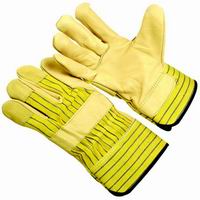 Quality Grain Cowhide Glove- Stripe Cotton Back -2.5" Rubberized Safety Cuff - Sizes: S-XL
