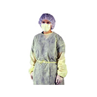 NON-WOVEN PP WITH ELASTICS 2\" WHITE CUFFS. TIE NECK & WAIST. YELLOW IN COLOUR.