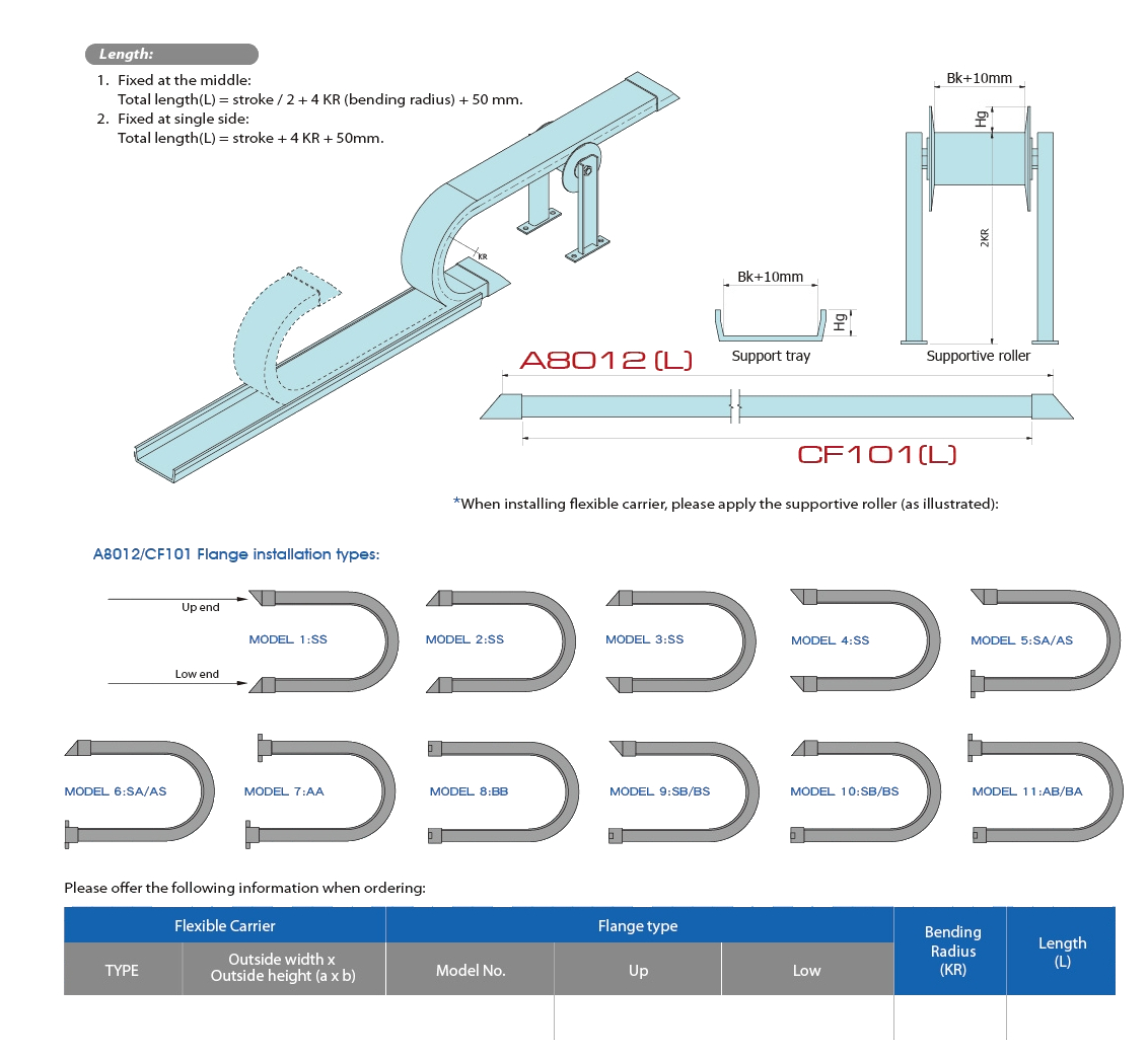- Other cable carrier type CF101 and cable drag chain type A8019 are available.