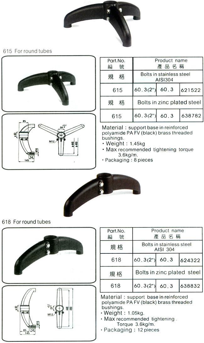 Support base in reinforced polyamide PA FV (black) brass threaded bushings.