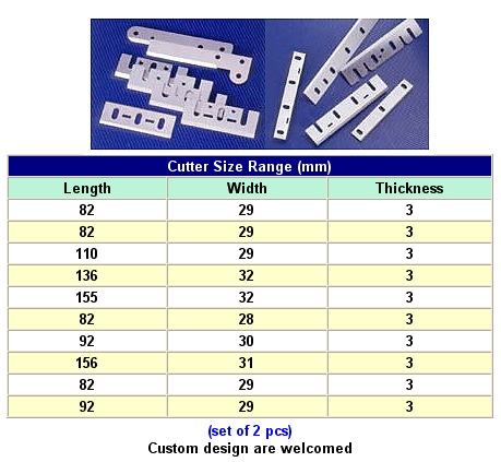Cutters for Packing Machinery, Woodworking Tools, Cutters for Plastic Processors, Brazed Carbide Tools and Paper Cutter