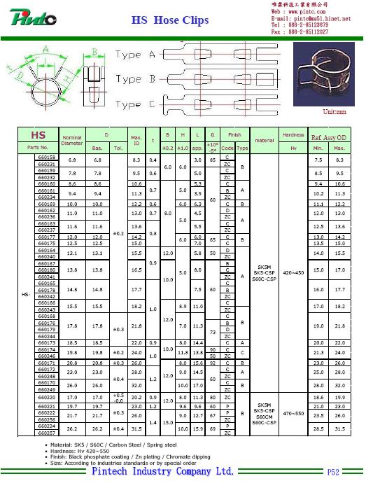 All kind of clip made by spring steel plate or carbon steel plate, with special treatment and all kind of surface finish, including the hose clip, spring collar, spring plate, with internal or external type, meet the industries specifications requirements or industries standards, can be made by OEM / ODM, most of the products have full level stock, both in metric size and inch size, can real time supply. Appreciate to have any kind of special design order.