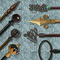 Curtain Accessory, Finials, Rod, Bracket, Ring, Holdback, Barbecue Tool, Fork, Spatula, Tongs, Brush, Meat Skewers, Folding Table