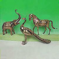 Brass Elephant Engraved ( Black ), Brass Peacock Engraved ( Black ), Brass Horse Engraved ( Black )