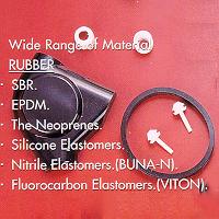 - Rubber: SBR, EPDM, the neoprenes, silicone elastomers, nitrile elastomers (BUNA-N), fluorocarbon elastomers (VITON)