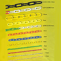 Plastic chain, metal chain with various colors, rest proof and low cost, luminant chains which are useful in danger and lowland, use at stairways when out of electricity, gardening, decoration, riverbed, Toy chain boundary, etc.