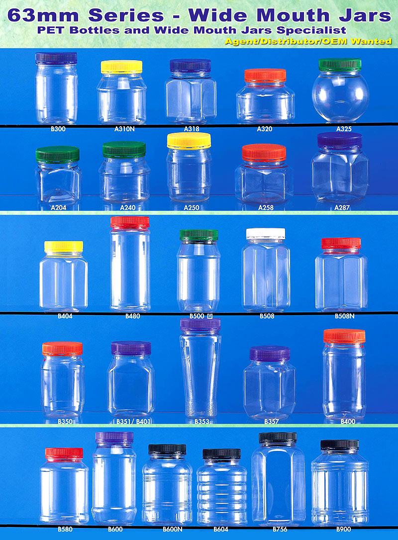 Clear 63mm series – plastic containers - wide mouth plastic jars with PE closure ranging from 200CC to 900CC. 60mm neck diameter with 63mm closure.