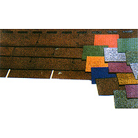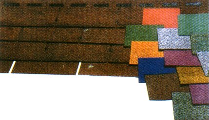 The product is reinforced with glass-fibre, impregnated and coattail with oxidized bitumen, upperside of the felt is surfaced with color-sand and lower side tale or other anti-adhesive materials. The color-sand surfaced felt is suitable to the grand building as a top roofing layer, which can decorates the roof.