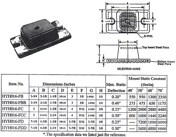 The product is for anti - vibration of power machinery. There are six different specification as photo-table show.