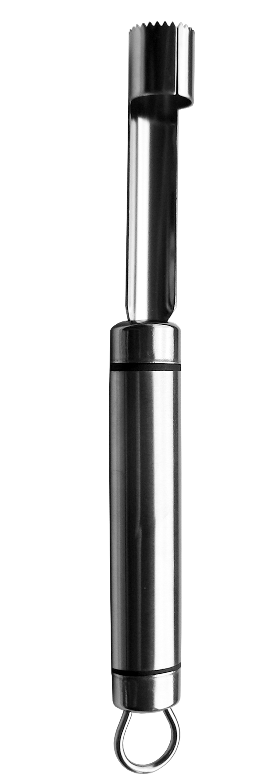 This apple corer is an important kitchen tool for hotels, restaurants, catering, and even everyday households. The cylindrical shaft can be inserted into the top of the fruit to remove the core effortlessly. Made of high carbon stainless steel for long lasting use.