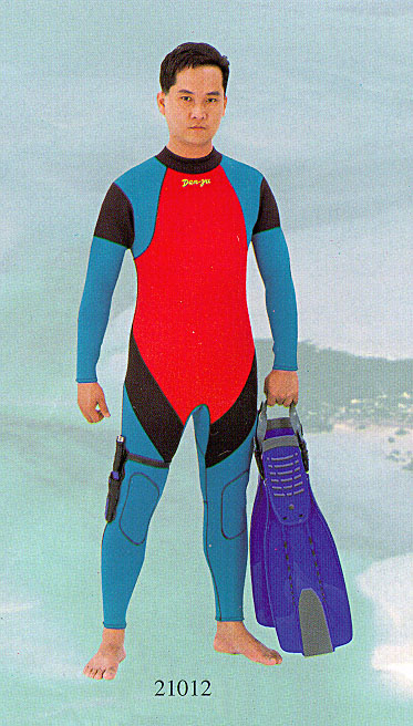 Wet suit for surfing and diving, fishing wader and jacket, medical supporters, cycling accessories, kidney belt, face masks and sporting bag.