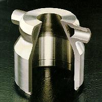 .One integral piece of an after burner nozzle casting made of UMCO 50 alloy used in the refinery industry. This cut out cross-section shows the water cooling ring inside the nozzle.Main Products