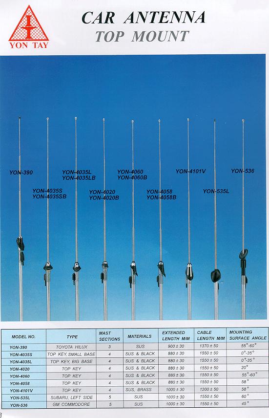 car antennas for AM / FM radios, TVs and CBs