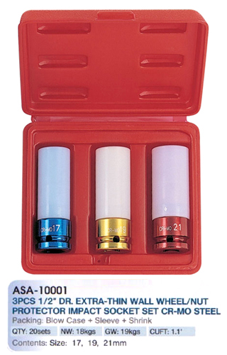 3PCS 1/2" Dr. Extra - Thin WallWheel / Nut Protector Impact Socket Set