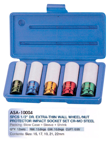 5PCS 1/2" Dr. Extra - Thin WallWheel / Nut Protector Impact Socket Set