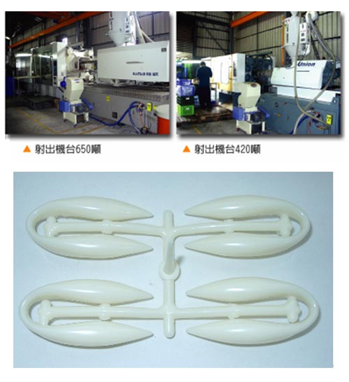 Injection molding machines from 3.5 oz to 150 oz with automatic robotic arm and computer controlled hot-tip injection.