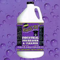 MAGIC 555(tm) Industrial Degreaser & Cleaner is tough on grease, grim and oil. It penetrates and breaks up oil, grease and dirt and has the unique power of lifting and separating from the soiled surface. P & D's MAGIC 555(tm) Industrial Degreaser & Cleaner delivers effective results without the use of any harsh chemicals like caustics, acids, enzymes or solvents. Unlike other petroleum based or caustic acid based cleaner, MAGIC 555(tm) Industrial Degreaser & Cleaner eliminates worker safety problems and the hazards associated with storage or disposal. Apply MAGIC 555(tm) Industrial Degreaser & Cleaner on the surface area to be cleaned, then rub gently back and forth with a cloth or brush depending upon the area to be cleaned. For best results use recommended water solution ratio for the application, then wash with water as normal.